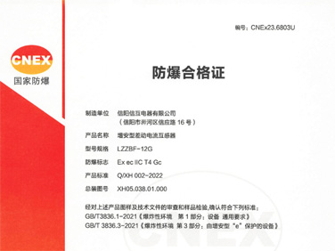 • 俄羅斯GOST防爆電氣增安型差動電流互感器證書