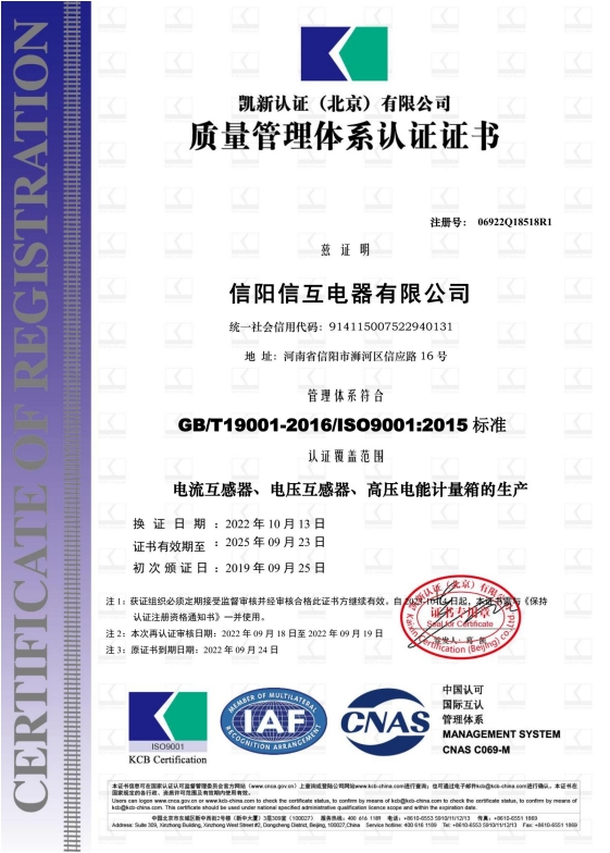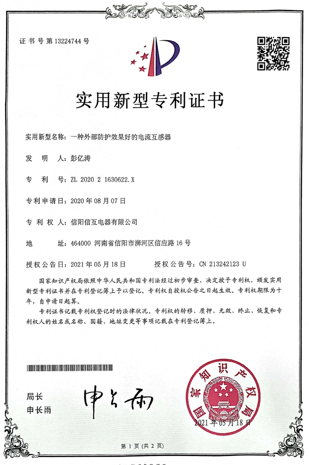 河南信陽信互電器有限公司(電力互感器制造廠)是機械、電力行業生產企業,“信互”牌互感器系列產品被評為“互感器”。曾擁有制造計量器具許可證、計量器具合格證書、防爆電氣設備合格證,企業被推薦為《全國城鄉建設與改造所需主要設備產品及生產企業》。是《變壓器》、《互感器》、《組合式互感器》國標導則宣貫的單位之一、輸變電協會互感器分會會員,報沈陽變壓器研究所備案的互感器生產單位。擁有“信互”牌注冊商標。