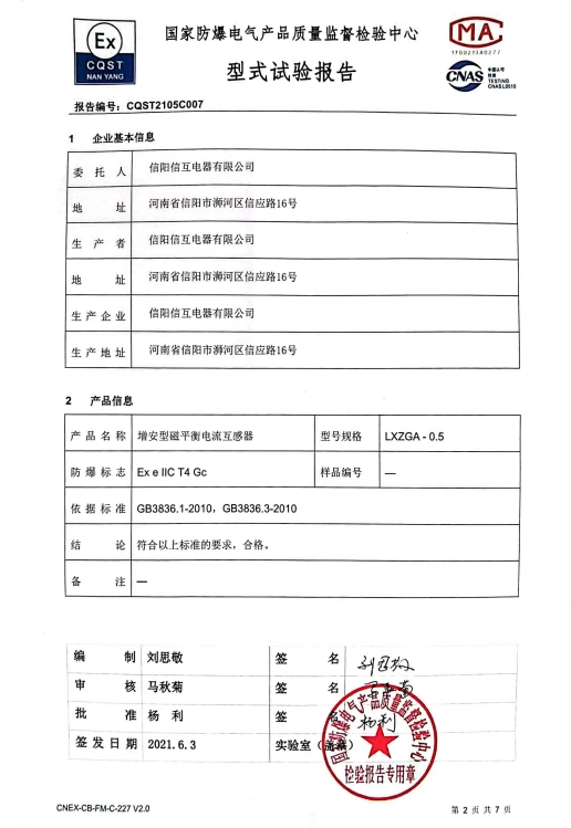 • 防爆互感器型式試驗報告